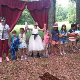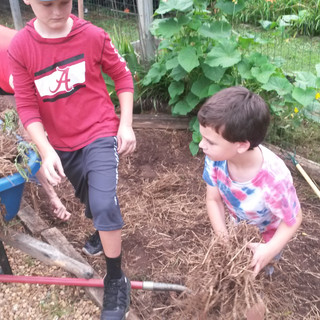 Day 5: First we played "Flower and the Bees" and "How Many Ways to Cross the River". Then we did some Gardening 101 while it was still cool in the morning. We were going to harvest potatoes but all the rain we had the past weeks flooded and rotted them out. But we still had fun digging up the soil to prepare it for new seeds. We checked out the final results of our BIodegradable Experiment. Then we finished our Native Plant Study with Ebony Spleenwort and Hickory Tree leaf rubbings. After snack, we discussed seed dispersal and all the ways seeds travel. In teams, we designed and made seed dispersal prototypes. We held them in front of the fan on the highest setting and recorded how far they traveled and calculated the average distance. The farthest was an average of 111 inches and was a parachute inspired design. We also performed Meadow Dandelion (a Chippewa folktale) and had Free Maker Time (time to create/draw whatever you want). Lastly, we played some more games like "Magic" and "If you ever...." After camp, parents joined us for a tour of the greenhouse, mini greenhouse/seed house, garden and school house.
