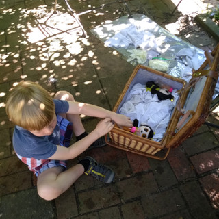 Today we started with a gratitude circle where we go around the circle and each say something we are grateful for. Then we went to Grandmother Tree to see if she left us a response. We got a letter from her explaining that the only way to defeat the Winter King is to play a special flute carved by the Beaver King which will wake up the Summer Spirits and lift the spell he placed on the land. She said we needed to collect all four parts of the Great Map to find where the Beaver King keeps his flute. She gave us the first part of the map which was the East and she told us she knew of one other part in the North guarded by the Gnomes. We had to follow the mushroom signs to find the Gnome Village. While there, we found a"To Do" note so we helped the Gnomes complete their to do list. We fixed the bridge, swept out their houses, fixed roofs, cleared their trails, washed and hung their little clothes, gave them fire wood and even planted some seeds in their garden box. We didn't find the Northern part of the map but are hoping by helping them they will help us tomorrow. Then we learned about bees. We talked about the different jobs bees have throughout their life and acted out the jobs of a bee as they grow older in life. First, a bee is a Cleaner (cleaning the hive) when born, then a Nurse (taking care of larvae), then a Guard (fighting off predators), then Forager (searching and bringing nectar back to the hive to turn into honey) and a Queen's attendant (keeping the Queen cool and happy). We also talked about why bees are so important to humans and our planet. Then we went with Ms. Melissa to see live bees from her hive in an aquarium and made bees wax candles.