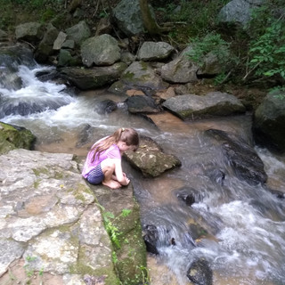 After some archery practice and running the obstacle course, we gathered for Gratitude Circle. Then we played some team building and drama games to strengthen awareness, concentration and creativity. We also did some more organic gardening with Ms. Melissa. Afterwards, we hiked to the classroom to learn about local animals. We talked about common wild animals and their tracks that can be seen throughout Northern Georgia. Some included wild turkey, racoon, white-tailed deer,grey squirrel, red fox, worm snake, king snake, copperhead, coral snake, water snake. We focused on snakes a lot because for our art activity we wet felted snakes with sheep's wool. Wet felting is a process of combining layers of wool with warm water and soap to create felt. Sitara even made a wet felted horse! Then we ate lunch and explored the woods and creek.