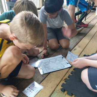 After a silly game of Bibbity Bibbity Bop and Gratitude Circle, we discussed all kinds of cycles in nature (from the life cycle of a strawberry plant to the various cycles of a star). Then they played a relay race to place different life cycles in the correct order. After the relay, they used information learned about the cycle of stars to solve codes that gave them puzzle pieces needed to open a lock to the treasure box. Then we went to the art studio to have snack and make a paper infinity flipper while it was raining outside. Then they went to obstacle course when it stopped raining, had lunch and went to the creek. At dismissal, some played a game called "Black Magic" while others did archery, marble run or created their own game with hoops and bean bags.